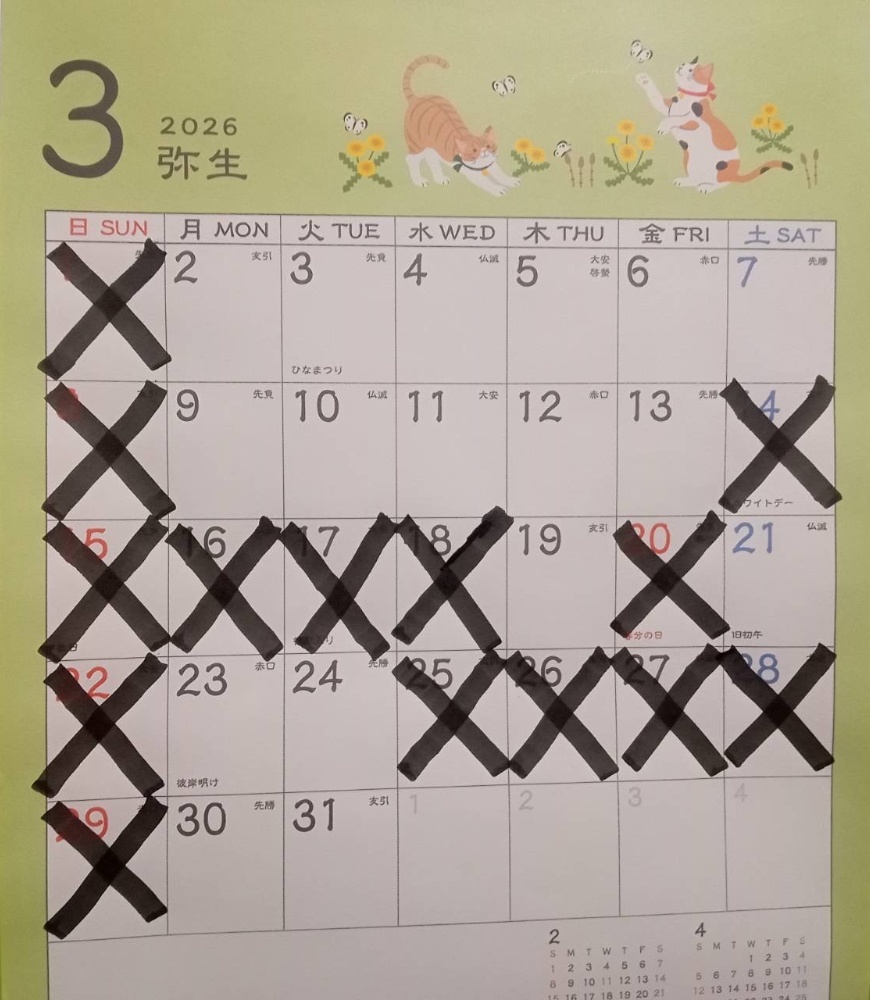 2026年3月の施術日